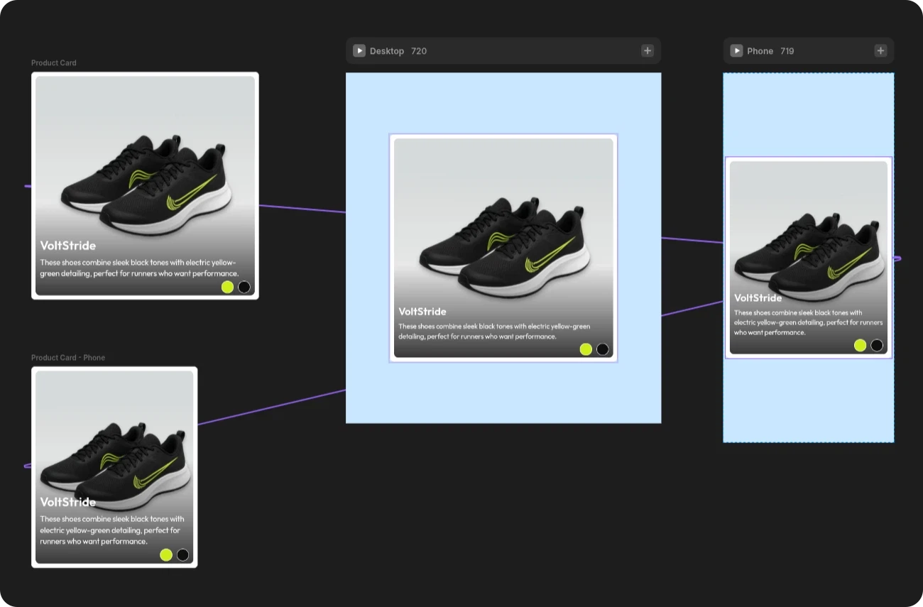This feature allows you to connect multiple elements and choose which one to display (See the props image above), it is primarily made so you can have different variants across breakpoints.
